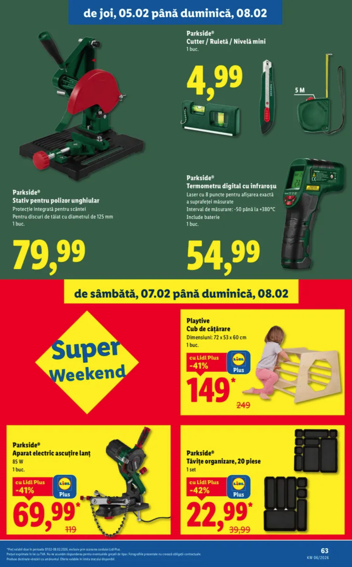 În revista valabilă în perioada 04.02 – 10.02.2026 avem parte de clasicele oferte pentru produsele Parkside (cu acestea cred că trebuie să ne obişnuim să apară săptămânal), cât şi de cele ce au legătură cu bucătăria (diverse ustensile, platouri, farfurii etc.). Ca noutate avem candele, însă acestea nu sunt de interes pentru articolul nostru.
