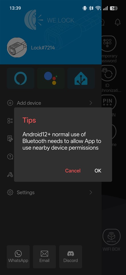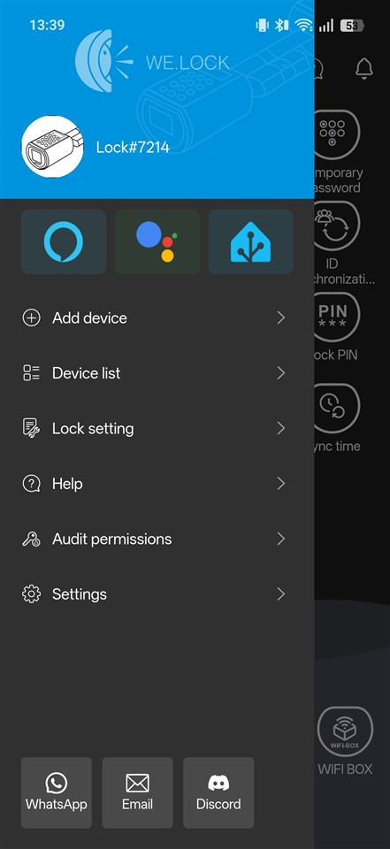 Capturi de ecran din aplicația WeLock de Android cu încuietoarea inteligentă WELOCK ToucA51 Pro: