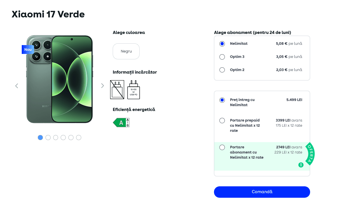 iPhone 17e a fost lansat momentan doar în Statele Unite ale Americii, iar preţul pentru varianta de 256 GB stocare este de 599 dolari, iar cel pentru opţiunea cu 512 GB stocare este de 799 dolari. Aşteptăm şi disponibilitatea pe plan local şi revenim cu preţ.