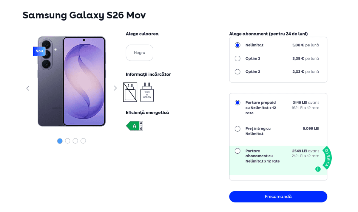 Digi Mobil şi-a îmbogăţit recent oferta de smartphone-uri cu zece noi modele astfel: Samsung Galaxy S26;
