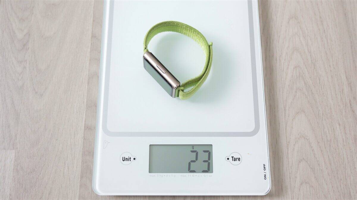 Cureaua în sine este textilă (nailon țesut) și este cu prindere velcro, deci poate fi ajustată precis, iar fixarea se face fără emoția că s-ar putea desface involuntar. De carcasa brățării cureaua se prinde printr-un mecanism cu click, care poate fi eliberat prin apăsarea unui buton de pe dispozitiv.