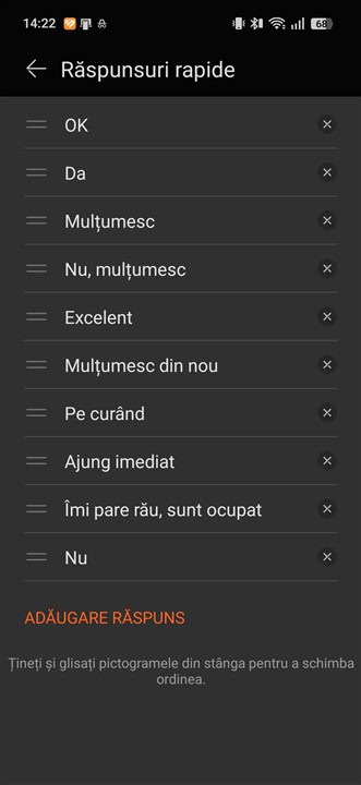 Nu avem difuzor sau microfon integrate, deci nu poți prelua apeluri pe HUAWEI Band 11 Pro, în schimb poți răspunde la mesaje direct de pe brățară, însă doar prin texte predefinite, pe care le poți modifica și adăuga din aplicația HUAWEI Health, compatibilă cu Android (9.0 sau mai nou) și iOS (13.0 sau mai recent). Răspunsurile predefinite pot avea maxim 36 caractere.