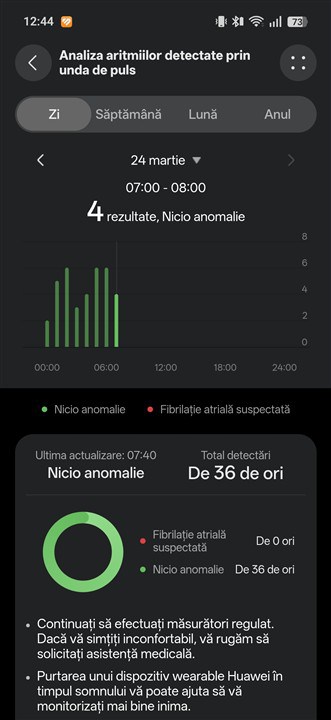 Analiza somnului este și ea foarte detaliată, cu HRV valabil și pe timpul nopții, deci brățara îți pune la dispoziție mai multe informații din care vei înțelege mai bine calitatea somnului.