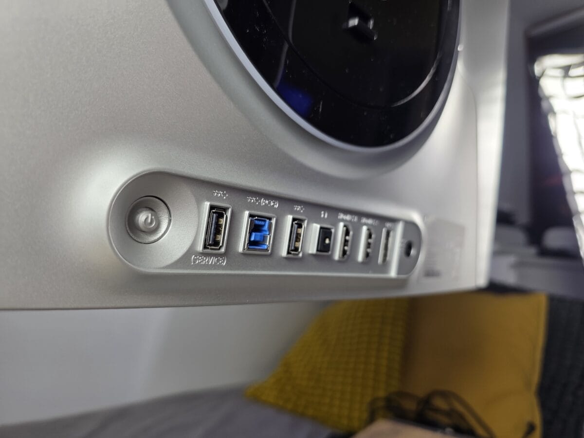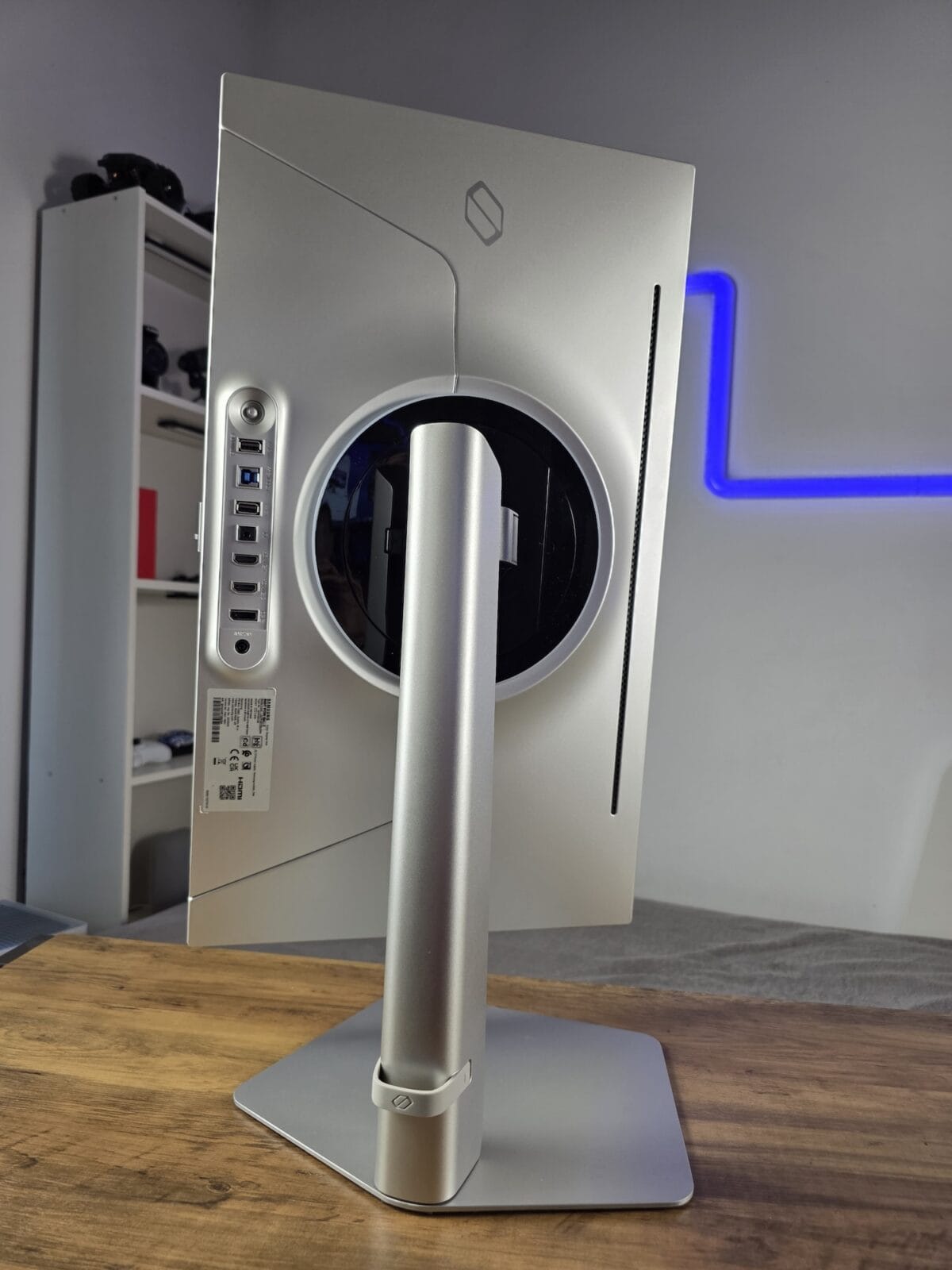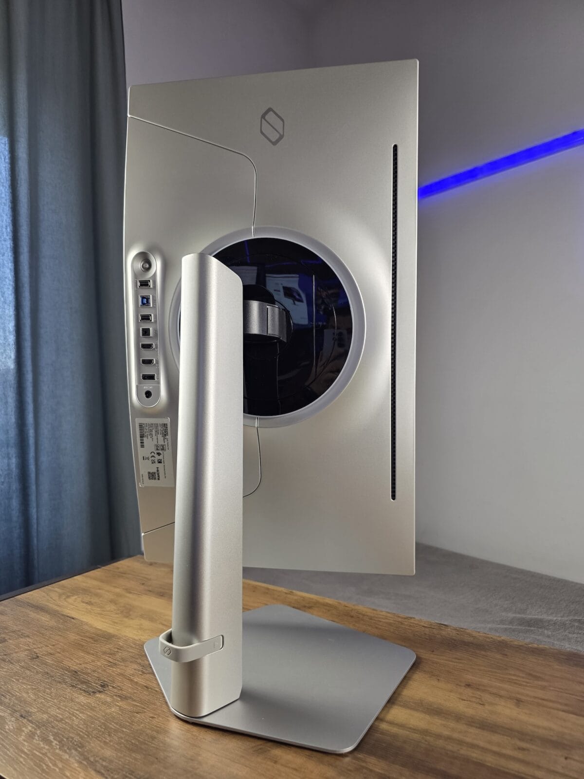 Toate elementele de conectivitate sunt poziționate în partea spate. Acolo dați de jack-ul de alimentare, portul DisplayPort 1.4, 2 x HDMI 2.1, jack de căști, 2 porturi USB-A și altul USB-B, pentru care aveți și cablu în pachet.
