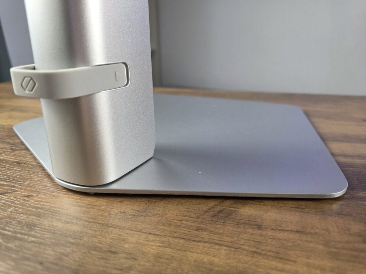 Standul permite rgelarea între – 2 grade și 25 grade la înclinare și rotire pe pivot la 92 grade, iar la stânga și dreapta de 30 grade. Ai suficientă amplitudine spre a-l regla după cum dorești.