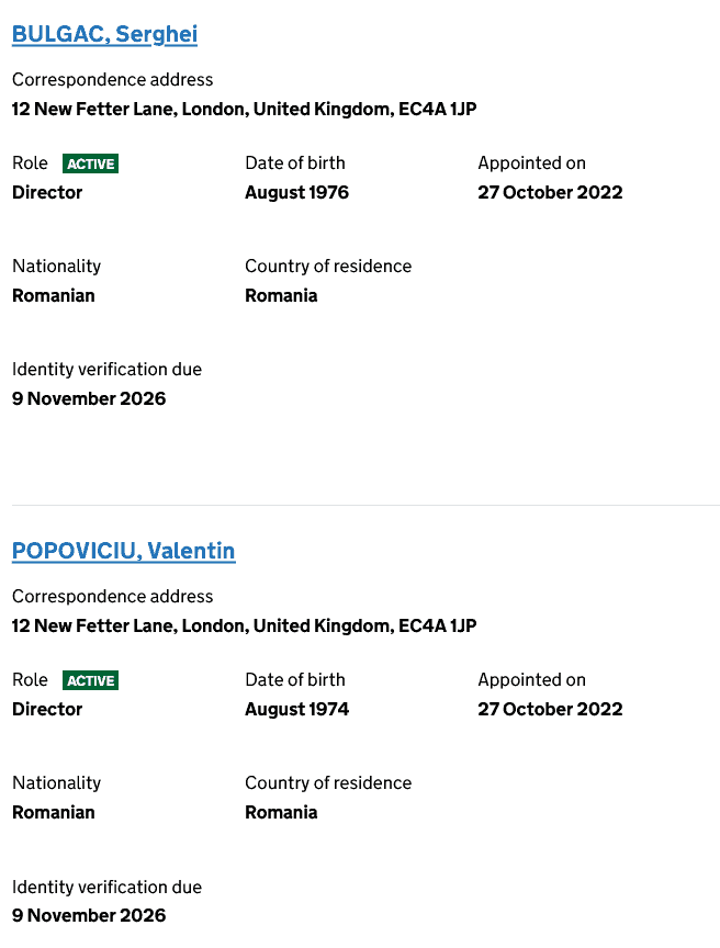 pe site-ul guvernului britanic company-information.service.gov.uk apar înregistrare două societăţi (Fiber One LTD. şi Orbis Communications Limited) cu persoane de contact Bulgac Serghei (CEO-ul DIGI) şi Popoviciu Valentin (Director Executiv de Strategie şi Operaţiuni în cadrul DIGI). Prima are ca domeniu de activitate reţele de telecomunicaţii, iar a doua vânzarea de telefoane mobile şi de servicii telecom.