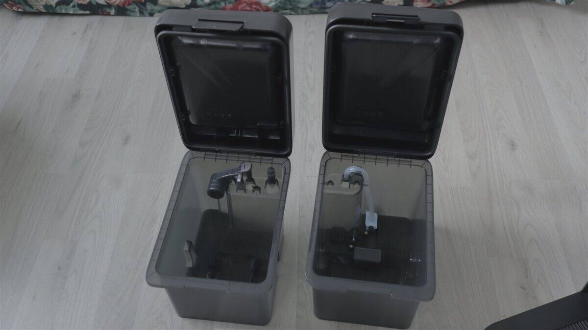 Avem aceeași abordare în cazul stației de andocare. Frontal, în partea de jos avem „garajul” unde revine robotul după fiecare sarcină executată, iar mai sus este locașul acoperit de un capac în spatele căruia este sacul de praf și recipientul pentru detergent de podele. Pe partea de sus sunt cele două rezervoare, pentru apă curată, respectiv apă murdară, care se pot scoate și umple / goli extrem de facil.