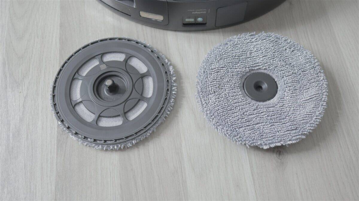 Pe laterale, în față apare complexul sistem de navigare StarSight Autonomous System 2.0 compus dintr-o cameră 3D ToF și una RGB. Mai spre spate, dar ușor către stânga apare a doua componentă de navigare – StarSight, care asigură și mai multă precizie. Fix în spate este zona de conectivitate cu stația, unde mai este un senzor, dar și orificiile de golire a prafului, de alimentare cu apă cu detergent și pinii de contact pentru încărcarea bateriei integrate în robot, una cu capacitatea de 6400 mAh.