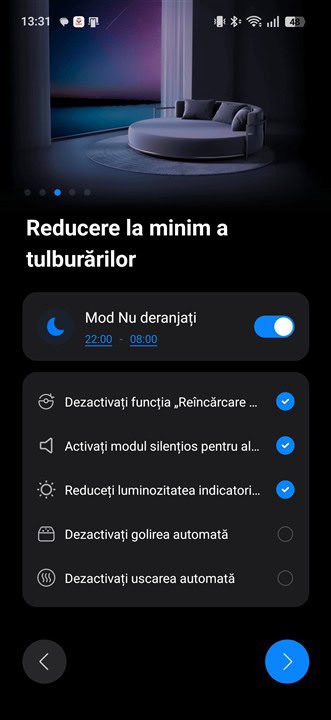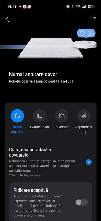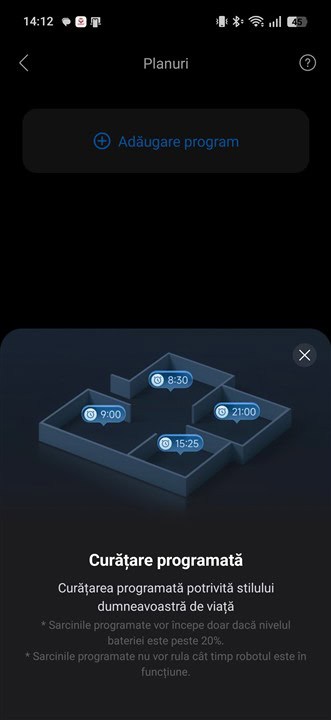 La fel cum am mai spus și explicat și cu alte ocazii, aplicația Roborock este plină de opțiuni și de posibilități de configurare, însă nimic nu este greu de înțeles, greoi de setat. Totul este bine reprezentat, cu explicații suplimentare pentru aproape fiecare meniu, ba chiar cu exemplificări grafice sau cu animații sugestive.