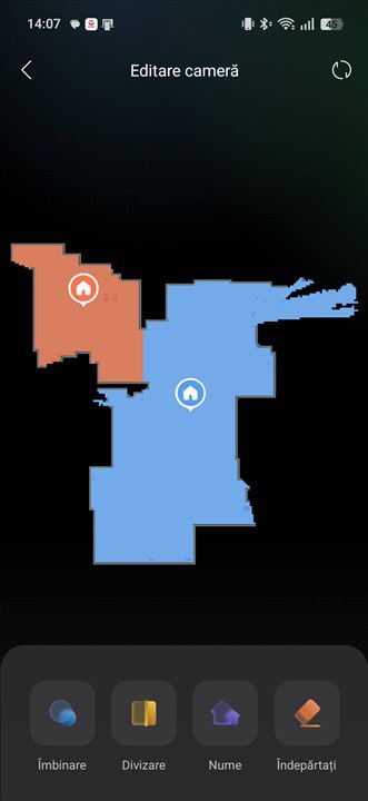 Ideea este că poți lăsa totul așa cum este din fabrică, majoritatea opțiunilor sunt pe auto, să le numim, iar Roborock Saros 20 poate începe în primă fază să cartografieze rapid locuința. Dacă vrei ca harta să cuprindă întreaga casă, este nevoie să lași toate ușile deschise. Eu am ales ca pentru test robotul să acționeze doar în living și bucătărie, care reprezintă de fapt o singură cameră de tip open space.