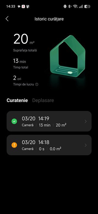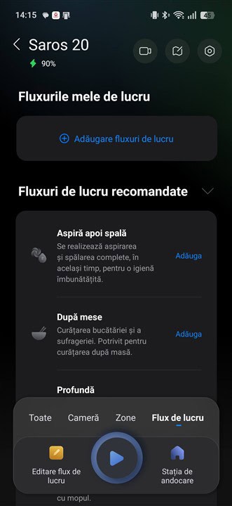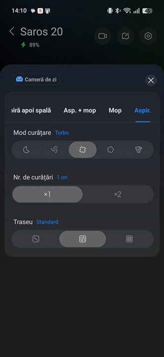 Capturi de ecran din aplicația Roborock pentru Android cu aspiratorul Roborock Saros 20: