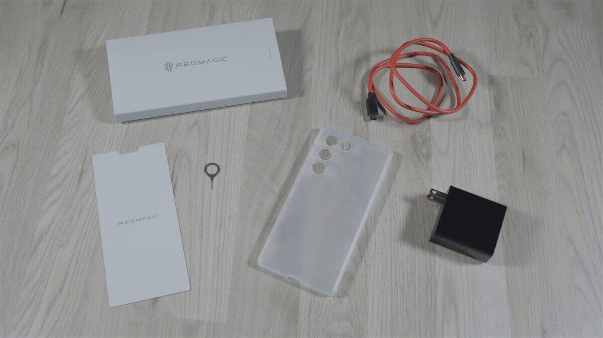 Eu am primit unitatea de test direct din China, așa că încărcătorul din pachet a fost unul cu pini specifici continentului asiatic. În rest, accesoriile ce-l însoțesc pe REDMAGIC 11 Air ar trebui să fie aceleași peste tot în lume și se referă la o husă transparentă din plastic rigid, la un cablu USB-C la ambele capete și agrafă pentru acces la slotul SIM. Pe ecran este aplicată din fabrică o folie de protecție din plastic.