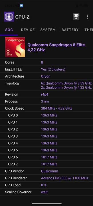 Qualcomm Snapdragon 8 Elite pe 3 nm, octa-core cu 2 x 4.32 GHz Oryon V2 Phoenix L + 6 x 3.53 GHz Oryon V2 Phoenix M
