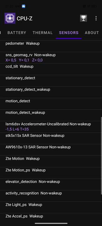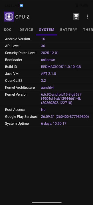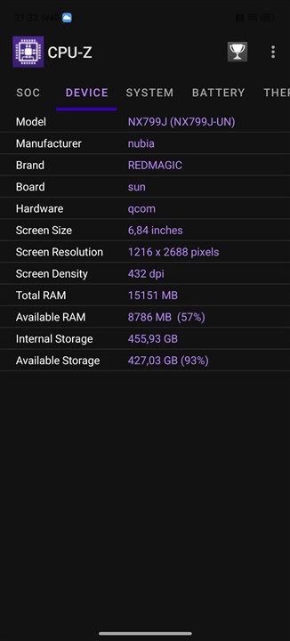Capturi de ecran din aplicația CPU-Z cu informații despre REDMAGIC 11 Air: