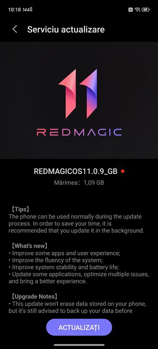 chiar dacă a rulat rapid și fluid, interfața REDMAGIC OS 11 nu pare cel mai bine optimizată, iar traducerea meniurilor în română nu este deloc cea mai corectă;